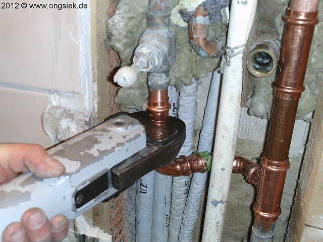 Pressen für Rohrinstallationen ist schon eine saubere Sache. Besonders an Stellen wo löten mit offener Flamme ein nicht überschaubares Gefahrenpotential beinhaltet.