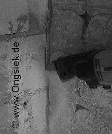 Auch Kalksandsteine können so geschnitten werden. Es ist allerdings mühsam, im folgenden Bild sieht man einen, für ein Lüftungsrohr erstellten rechteckigen Wanddurchbruch.