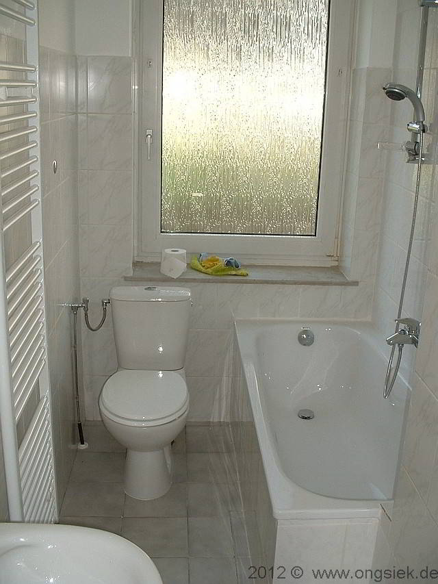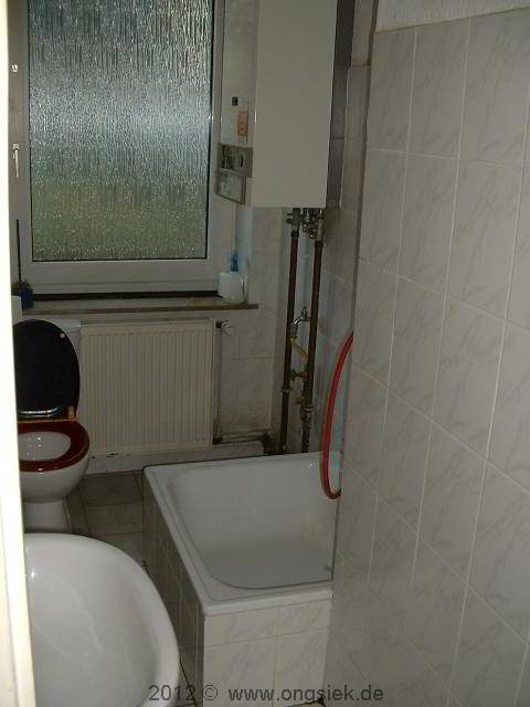 Dieses Bad wurde nur ein wenig Saniert, die vorhandene Therme repariert und in den Keller verlegt, die Dusche gegen eine Wanne ersetzt, das WC instandgesetzt, aber sehen Sie selbst.
