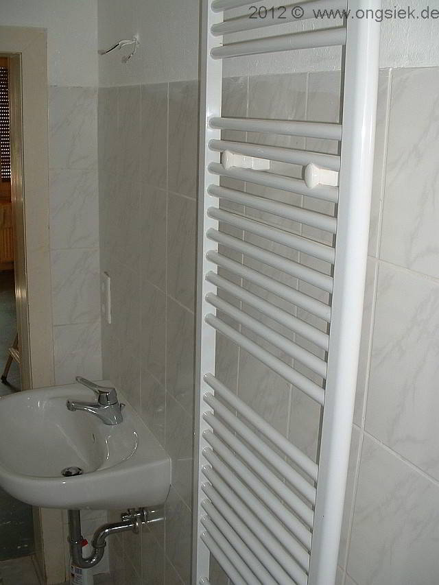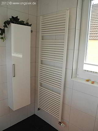 Der Badheizkörper, ein großes Modell, da er allein die Beheizung bewerkstelligen muss.