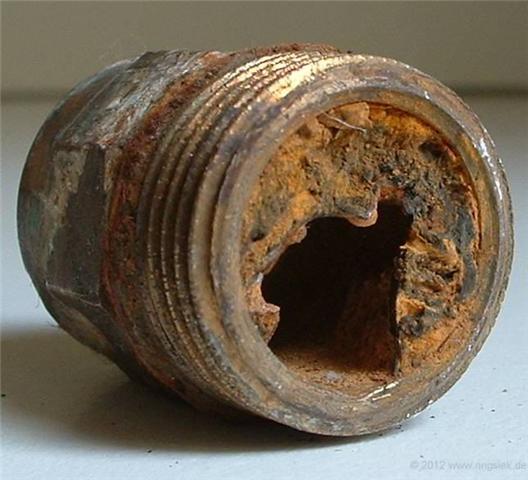 · Im folgenden Bild ist das Rohr an drei Stellen durchgerostet.