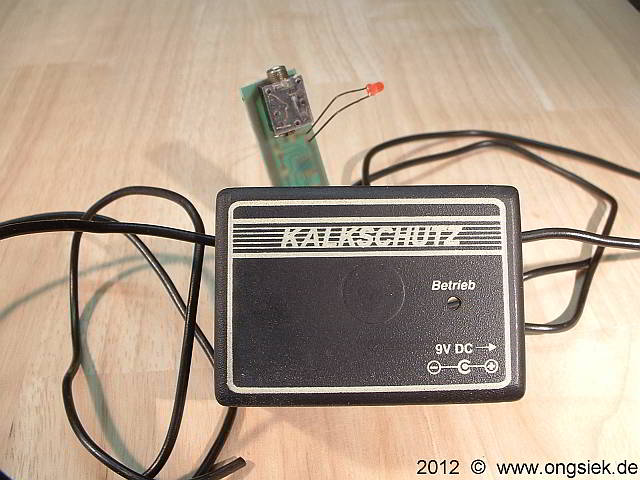 Hier zwei Bilder von einem elektronischen Kalkschutz, welcher diese wundersame Macht über den "Kalk" besitzen soll.