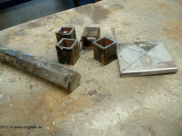 Nun noch die vier Vierkantrohrstücke als Kreuzführung verschweißen