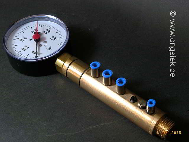 Nun noch die Gewinde für die Pneumatik-Kupplungen einarbeiten, ich überlege, ob ich die eine Seite mit metrischen Gewinden ausstatte (M5 und M7), doch, M7 ist richtig, genau ist es ein M7 x 1 Gewinde, und auf der anderen Seite nehme ich die 1/8“ und ¼“ Whiteworth Rohrgewinde.