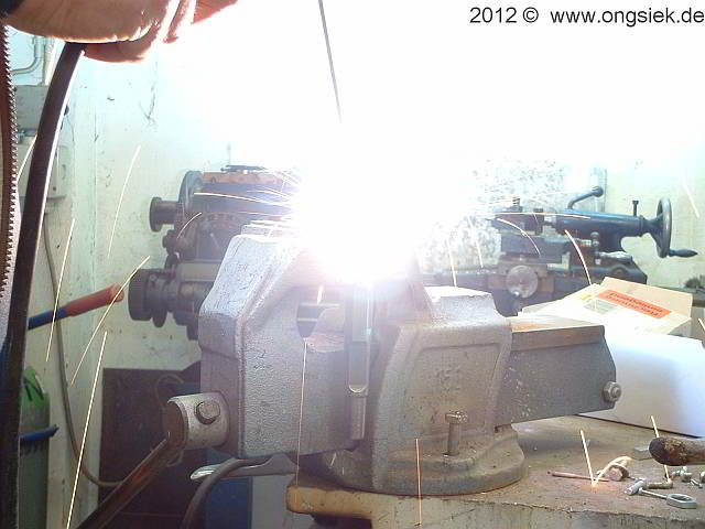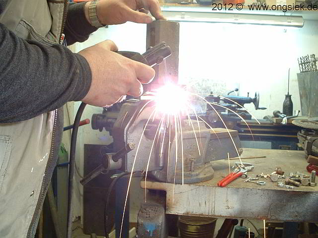 Aber Heute musste es sein, ein alter Meißel stand zur Verfügung ich habe schon länger nicht mehr geschweißt (macht mir hin und wieder Spaß), ich könnte noch ein paar Bilder für die Metallecke gebrauchen, ist ja nichts da, und ein Kreuzerder muss in den nächsten Tage eingebracht werden, nun dann, auf geht's.