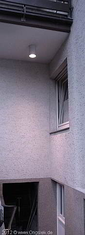 Strahler für E 27 PAR Leuchtmittel, Ziel dieses Entwurfs, eine Leuchte, welche auf sehr lange Sicht haltbar ist, da eine Wartung, bedingt durch die Montagehöhe über einer Treppe, sehr aufwendig ist. Gebaut ca. 1988 / 89, die Leuchte ist seitdem im Einsatz die Bilder Stammen aus Nov.2012, diese Leuchte war somit min 23 Jahre in Gebrauch, bisher war keinerlei Wartung nötig.