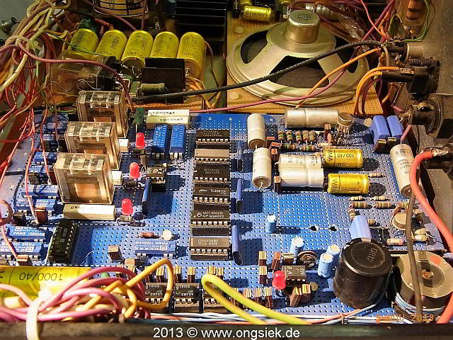 Für Kenner, der Sieb-Kondensator wiegt über einen Kilo und muss vor jedem ersten Einschalten über einen Vorwiderstand, sanft aufgeladen werden, wurde natürlich automatisiert, sonst verabschieden sich alle vorgeschalteten Sicherungen, ich bin mir nicht mehr ganz sicher aber ich meine den Heizwiderstand einer Waschmaschine oder eine kleine Herdplatte als Vorwiderstand eingesetzt zu haben.
