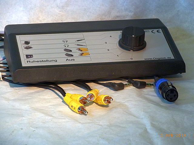 Die Aufgabe bestand nur darin, eine sichere Umsteuerung zwischen zwei Tonquellen (Stereo), einem Videorekorder und einem Laptop herzustellen, welche Fehlerfrei auch von fremden Referenten bedient werden kann. Dann gehe ich mal mit dieser Umschaltbox ins Rennen.