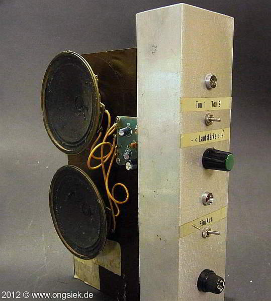 Es stand zwischen zwei Monitoren und verstärkte das Tonsignal in dem zu überwachenden Raum, ein Selbstbau war hier nötig, da es ein genau passendes Teil nicht zu kaufen gibt, und der Nutzer viel Wert auf leichte Bedienung legt.
