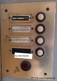 Ausstattung des neuen ( überarbeiteten) Klingelschildes
