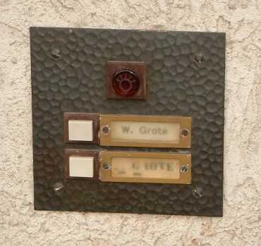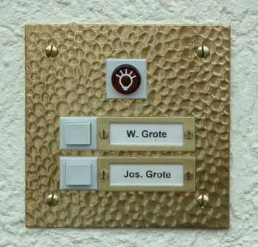 Hier wurde die alte Klingelplatte gegen eine andere alte Klingelplatte getauscht da die Oberflächenstruktur nicht mit der weißen Aluhaustür harmonierte.