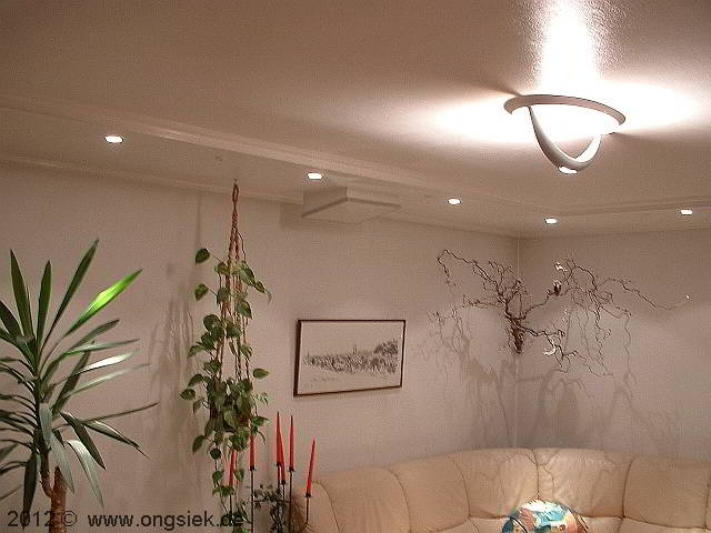 In diesem geschaffenen Installationsraum konnten nun die Downlights montiert werden, aber Möglichkeiten schaffen neue Ideen, und so wurden noch zwei unabhängige Kreise mit 12 V Leuchtensteckdosen installiert. In welche gezielt entsprechend der Raumgestaltung temporäre Leuchte positioniert werden können wie man im 2. Bild sehen kann.