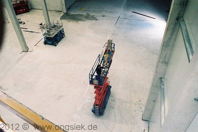 Arbeitsbühne Standfläche ca. 18 m Höchste Stelle Decke ca. 22 m.