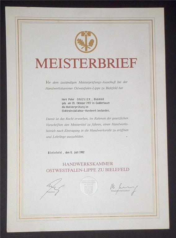 Ich habe lange gesucht aber ich habe zumindest die Meisterbriefe gefunden, denn seit deren Ausstellung verweilten diese immer noch im Orginalumschlag.