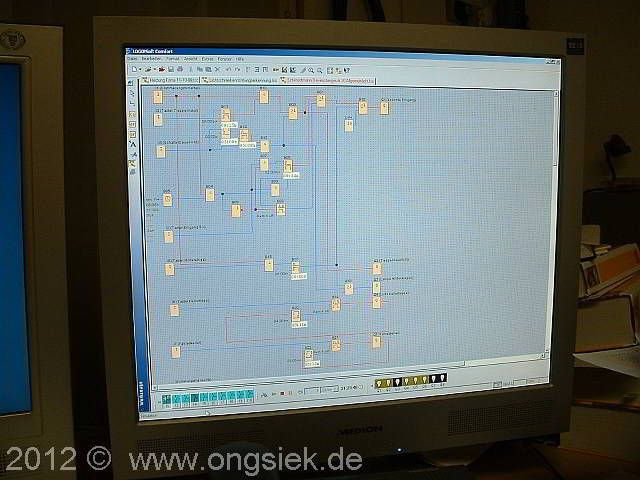 Oben sieht man ein Schaltprogramm, für eine alte Siemens Logo ( BA0 ), auf dem PC Monitor, in der Simulationsphase.