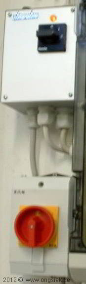 obere Reihe Platz 12 = Überspannungsschutz, sehr altes Modell, noch mit 220 V Etikettiert.