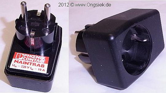 Im folgenden Bild sehen Sie einen Zwischenstecker. welcher die gleichen Funktionen übernimmt. wie in den beiden darauf folgenden Bildern dargestellter Serienmäßiger Überspannungsschutz, natürlich Leistungsangepasst.
