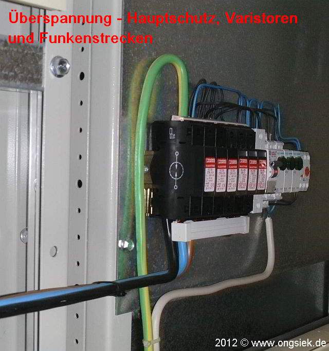 Als Hauptschutz dienen Hochleistungs-Zinkoxid (ZnO) Varistoren welche oft in Verbindung mit Gasableitern (Funkenstrecke) verbaut werden. Diese 1. Stufe wird je nach den Regeln ihres Energieversorgers entweder vor den Stromzählern oder hinter dem Stromzähler direkt auf den Hauptstromkreis aufgeschaltet. Die Ableiter leiten eine Überspannung gegen Erde ab. Die Anzahl der Ableiter richtet sich nach der bei ihnen genutzten Netzform des Hauptversorgungs-Stromnetzes, der Fachmann ihres Vertrauens wird es wissen.