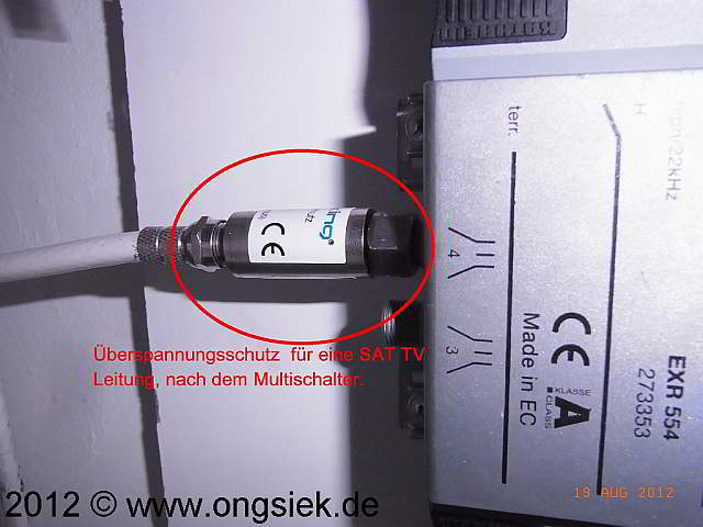 Im folgenden Bild sehen Sie, wie in dieses Bauteil die Hoffnung verlagert wird, das es den Multischalter rettet wenn ein defekter Receiver so sein Leben aushaucht, das er just noch einmal richtig viel Spannung auf die Antennenleitung gibt, ansonsten gibt es noch mannigfaltige Fehlerquellen welche in ausgedehnten Netzen leider nicht zu vermeiden sind.