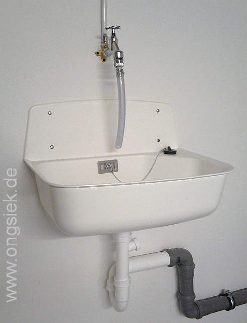 Der Zapfhahn ist natürlich -gem. DIN- mit einem Rücklaufverhinderer, und einer Rohr-Belüftung ausgestattet, als Versorgungsleitung wurde ein PE-Kunststoffrohr gewählt, welches Frostfrei verlegt wurde.
