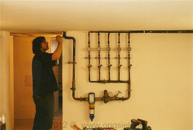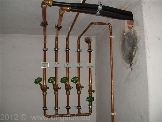 Seinerzeit, habe ich fast immer, alle Kupferrohre hartgelötet, so natürlich auch diesen Verteiler. Das ist heutzutage allerdings nicht mehr zulässig. Bei kleineren Rohrdimensionen, wie sie im normalen Wohnungsbau verwand werden ist bei Kupferrohr nur noch Weichlöten oder Pressen zulässig, Weichlöten ( stirbt auch aus ) denn Pressen ist zurzeit aktuell.