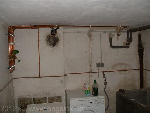 Weiterhin sehen sie meinen Bruder, welcher, damit beschäftigt ist, seine Rohre mit schöner blauer Maschinenfarbe zu streichen, ok, DIN sagt Wasser = grün, aber bei uns ist es halt immer blau, die Farbe ist super sitzt auch 2012 noch fest auf den Rohren.